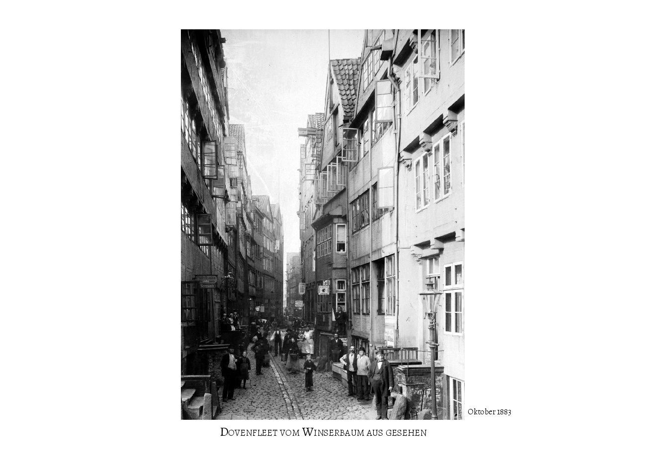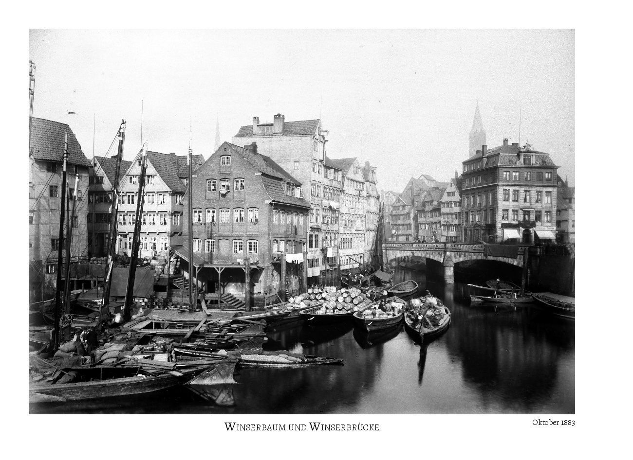 1883 beauftragte die Baudeputation den Fotografen Georg Koppmann damit, die Straßen, die für den Bau der Speicherstadt abgerissen werden sollten, fotografisch zu dokumentieren. Seine fantastischen Bilder der alten Kehrwieder- und Wandrahminsel, der Straßen, Brücken und Fleeten, Häuser, Geschäfte und Menschen bilden heute die Erinnerung an dieses für immer verlorene Viertel.